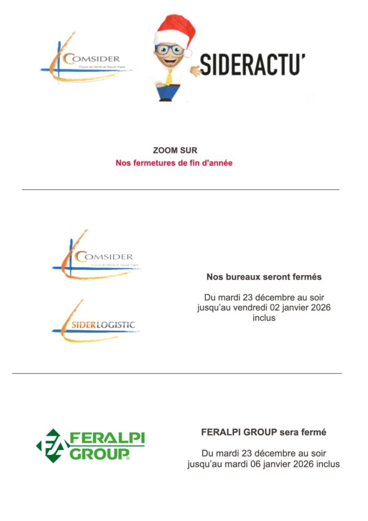 Comsider » SiderActus » SIDERACTU 87 – ZOOM SUR NOS FERMETURES DE FIN D’ANNÉE