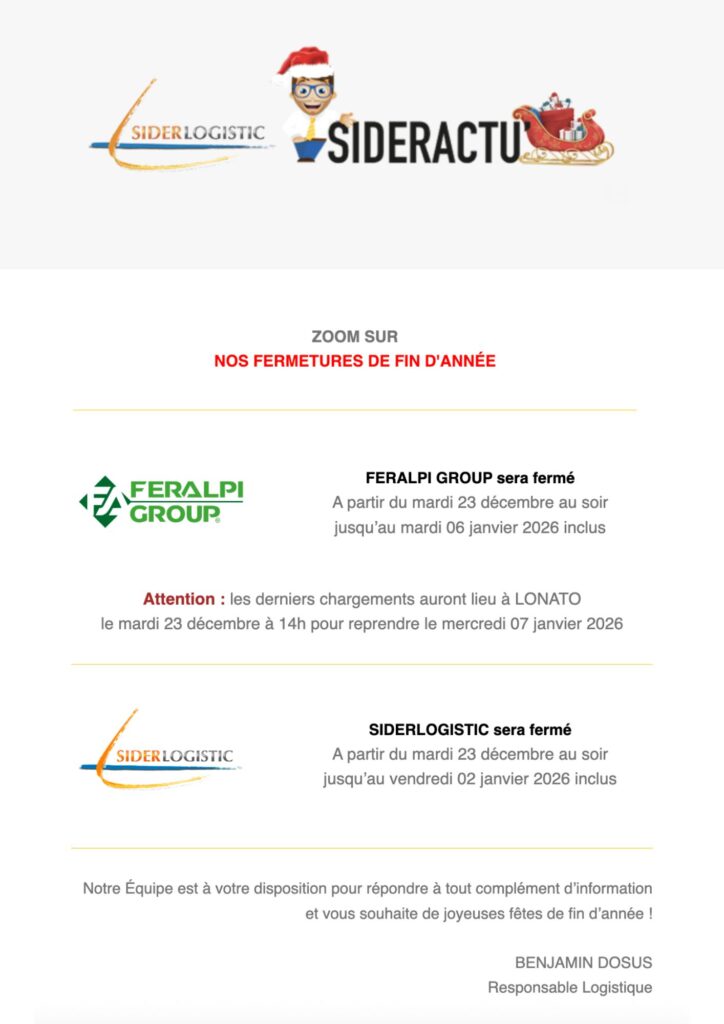 Comsider » SiderActus » SIDERACTU 88 – NOS FERMETURES DE FIN D’ANNÉE